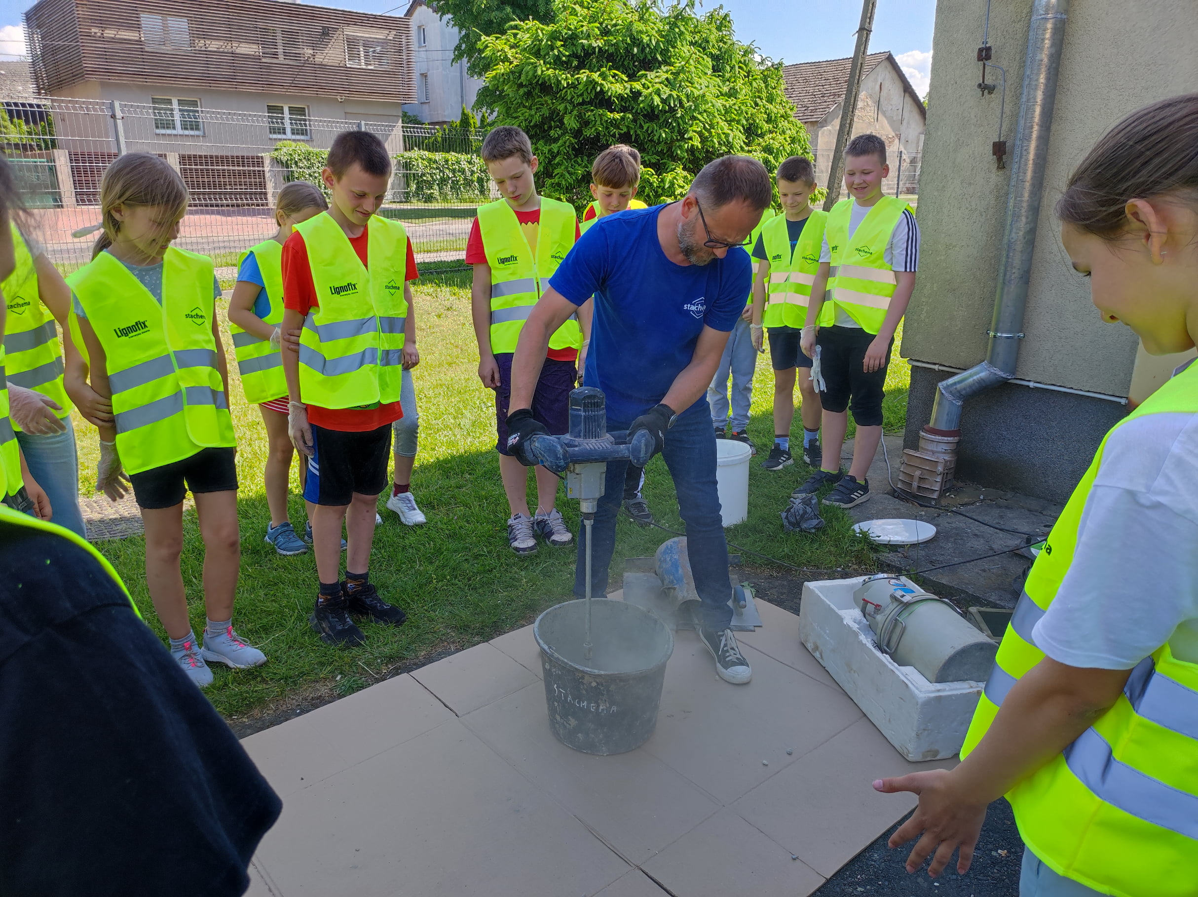 Część praktyczna pozwoliła dzieciom wczuć się w rolę betonowych „alchemików” poprzez czynne uczestnictwo w wykonywaniu zarobów oraz późniejszych badaniach. Ich zadaniem było wykonać dwa różne betony, oba z zastosowaniem nowej domieszki do betonów ekologicznych GreenCON 1.