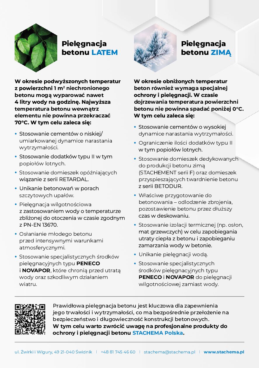 Pielęgnacja betonu zimą ma kluczowe znaczenie dla osiągnięcia odpowiedniej wytrzymałości, szczelności, a w konsekwencji odporności na zamrażanie i rozmrażanie, szczególnie w przypadku betonów niskoemisyjnych. Staranne zabezpieczenie, kontrola temperatury i wilgotności oraz stosowanie odpowiednich domieszek i środków chemicznych są niezbędne, aby zapewnić wymagane parametry betonu w trudnych warunkach klimatycznych.